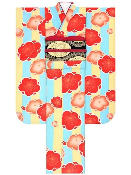振袖レンタルセット 大梅に椿(赤)/帯 花菱亀甲(白金)