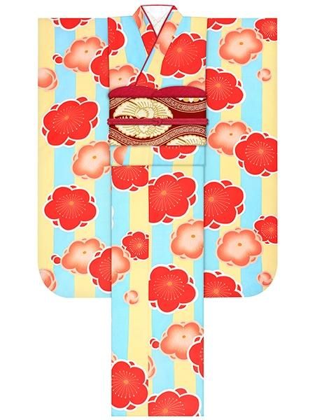 振袖レンタルセット つばき家紋(カラシ)/帯 ドット(オフ)