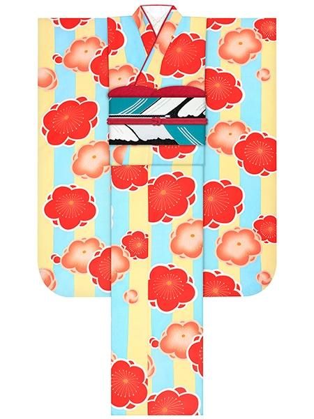 振袖レンタルセット ピーコック(黒)/帯 矢羽根(赤)