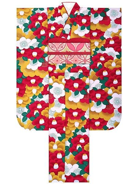正絹振袖レンタルセット 花玉(緑)/帯 七宝(ピンク)
