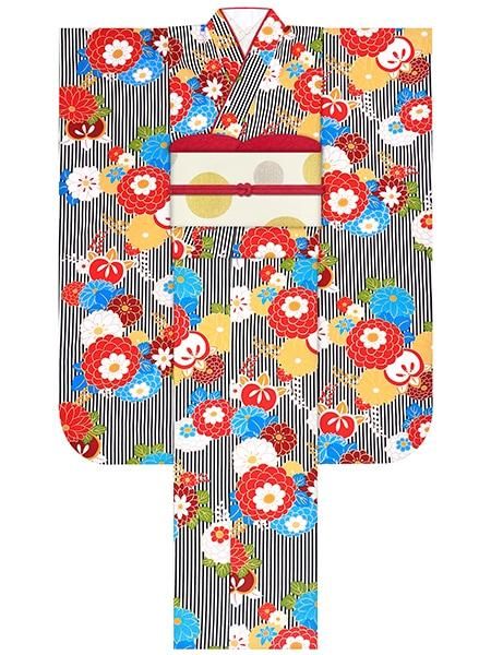 振袖レンタルセット 縞に梅(黄)/帯 亀甲(黒)