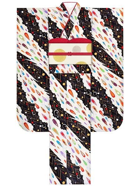 振袖レンタルセット ピーコック(黒)/帯 ドット(オフ)