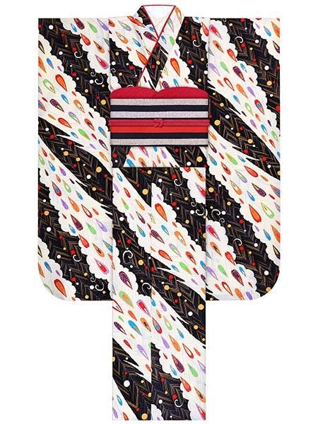 振袖レンタルセット アネモネブーケ(オフ)/帯 ドット(赤)