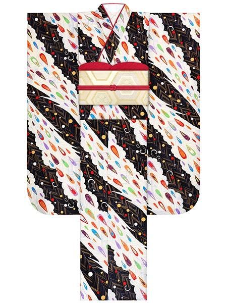 振袖レンタルセット 華亀甲(オフ)/帯 矢羽根(赤)
