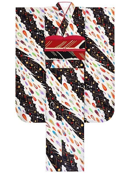 正絹振袖レンタルセット アンティークローズ(オフ)/帯 ドット(赤)