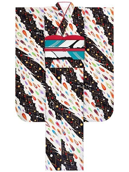 振袖レンタルセット 華亀甲(オフ)/帯 更紗(黒)