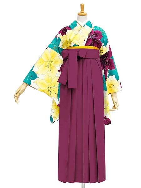 正絹振袖レンタルセット 軍鶏牡丹(オフ)/帯 縞(白金)