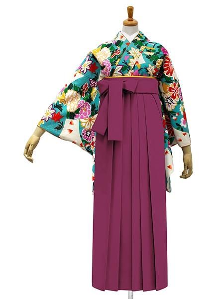 振袖レンタルセット つばき刺繍(グレー)/帯 矢羽根(ターコイズ)