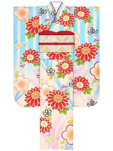 振袖レンタルセット 百合(グレー)/帯 七宝(ターコイズ)