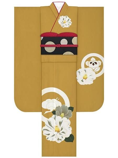 振袖レンタルセット つばき家紋(オフ)/帯 亀甲(黒)