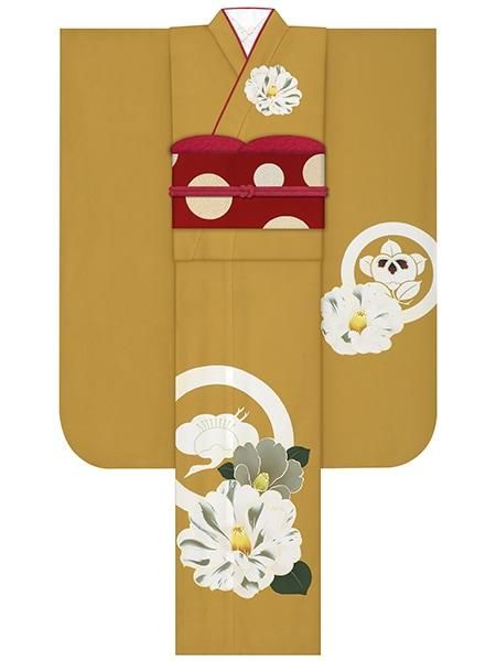 振袖レンタルセット つばき家紋(カラシ)/帯 ドット(オフ)