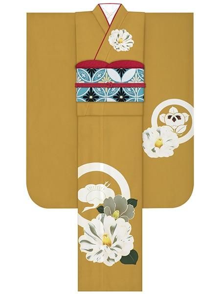 振袖レンタルセット つばき家紋(カラシ)/帯 七宝(ターコイズ)
