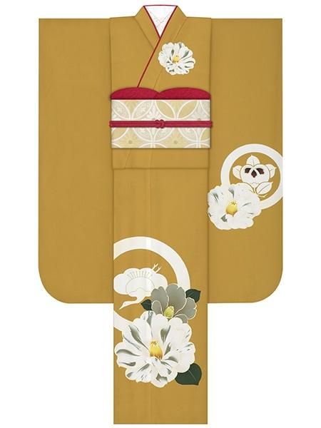 振袖レンタルセット つばき家紋(オフ)/帯 花菱亀甲(白金)