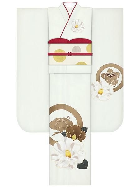 振袖レンタルセット 梅と椿と楓(オフ)/帯 七宝(ターコイズ)