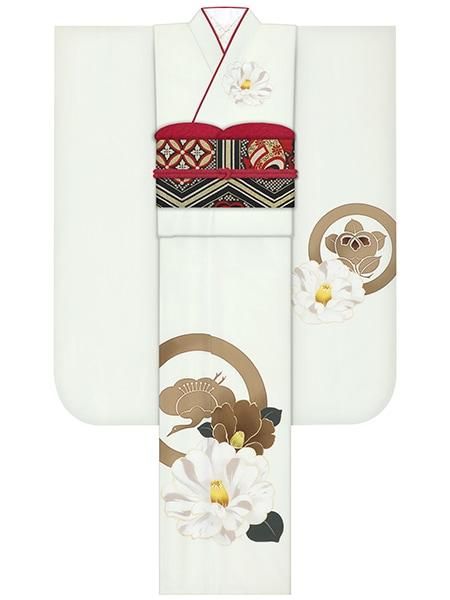 正絹振袖レンタルセット 祝い菊(ボルドー)/帯 花菱亀甲(白金)