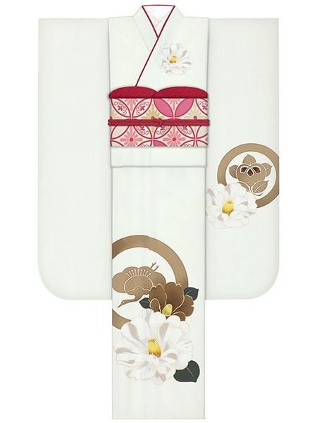 振袖レンタルセット レトロ椿(アイボリー)/帯 更紗(オフ)