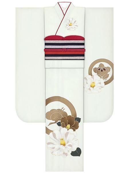 振袖レンタルセット つばき家紋(オフ)/帯 おしどり(ターコイズ)