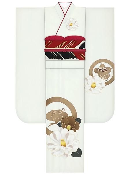 振袖レンタルセット レトロ椿(アイボリー)/帯 更紗(オフ)