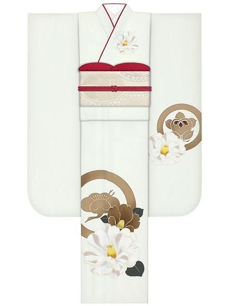振袖レンタルセット つばき家紋(オフ)/帯 おしどり(白銀)