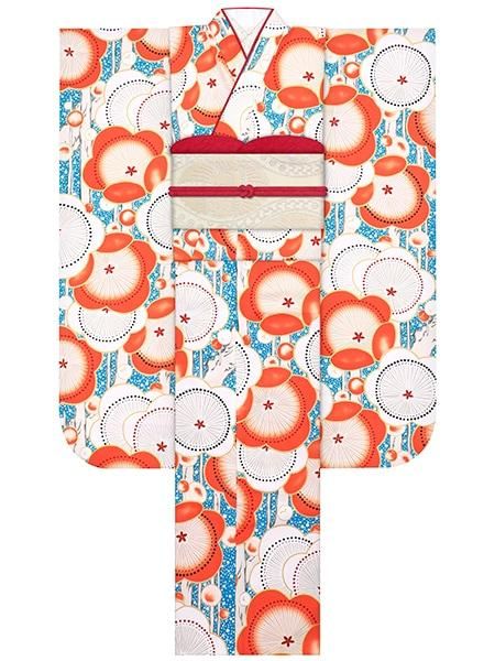 振袖レンタルセット あられ梅(空色)/帯 おしどり(白銀)