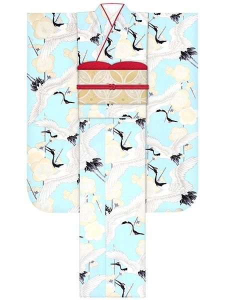 振袖レンタルセット 七宝薬玉(オフ)/帯 矢羽根(ターコイズ)