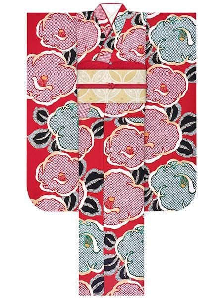 振袖レンタルセット 疋田椿(赤)/帯 七宝(白金)
