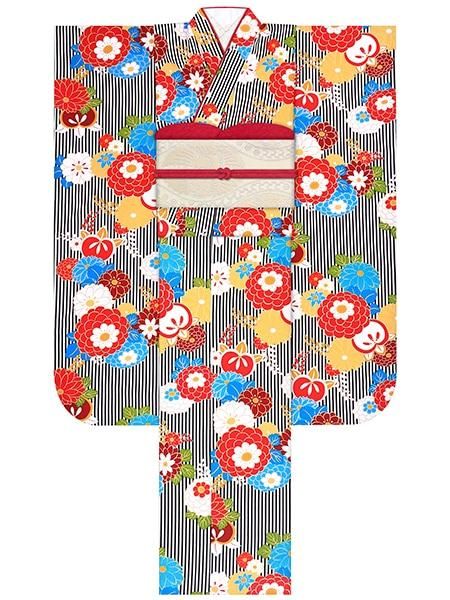 振袖レンタルセット つばき家紋(オフ)/帯 縞(黒)