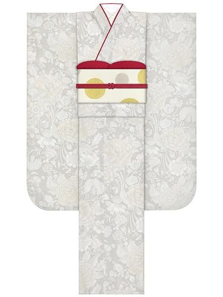 正絹振袖レンタルセット オールドローズ(グレー)/帯 七宝(ターコイズ)