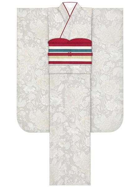 振袖レンタルセット つばき家紋(オフ)/帯 おしどり(ターコイズ)