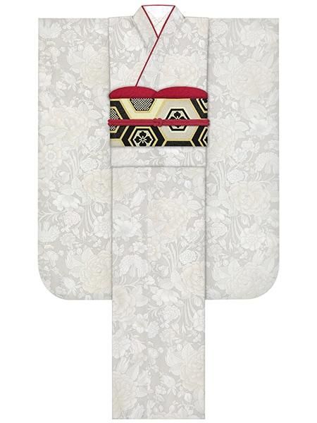 振袖レンタルセット 華亀甲(オフ)/帯 更紗(黒)