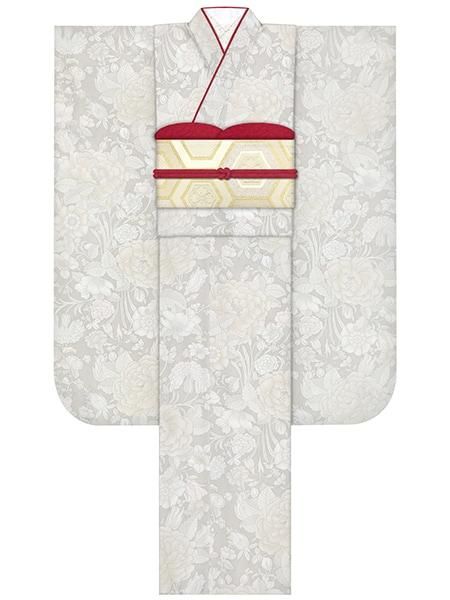 振袖レンタルセット 七宝薬玉(オフ)/帯 花菱亀甲(緑)