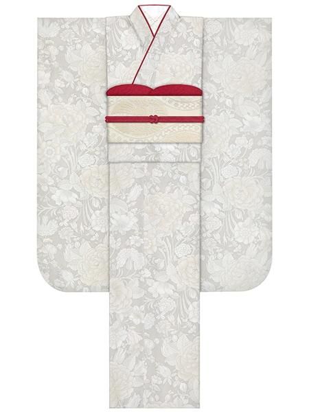 振袖レンタルセット 華亀甲(オフ)/帯 矢羽根(赤)