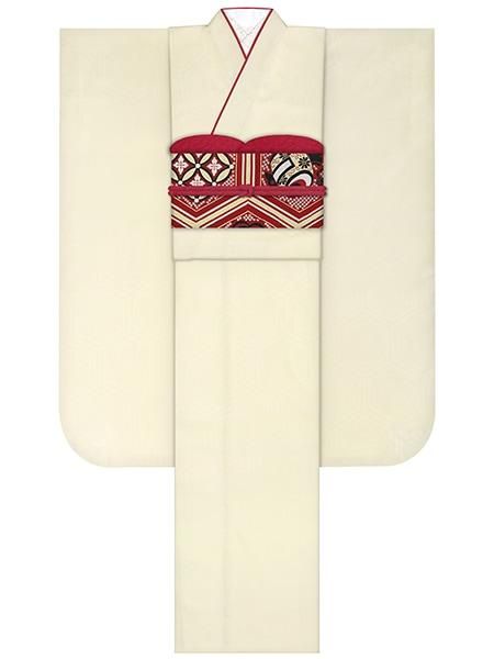 振袖レンタルセット つばき家紋(オフ)/帯 亀甲(赤)
