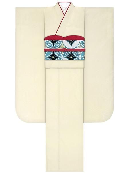 正絹振袖レンタルセット アンティークローズ(オフ)/帯 矢羽根(ターコイズ)