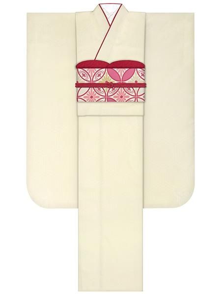 振袖レンタルセット 華亀甲(オフ)/帯 七宝(ピンク)