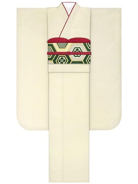 正絹振袖レンタルセット 軍鶏牡丹(オフ)/帯 縞(オフ)
