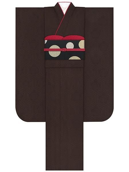 振袖レンタルセット 椿(黒)/帯 ドット(赤)