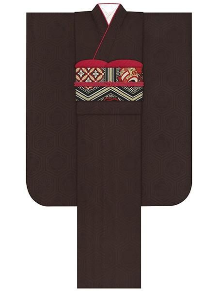 振袖レンタルセット 椿(黒)/帯 亀甲(赤)