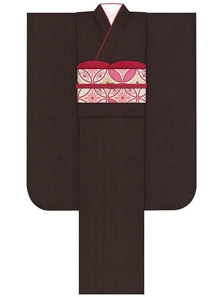振袖レンタルセット 椿(黒)/帯 花菱亀甲(緑)