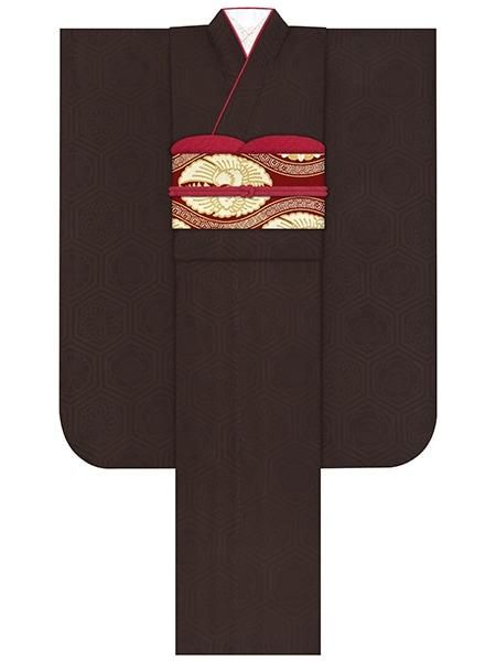 振袖レンタルセット 華亀甲(ブラウン)/帯 縞(オフ)