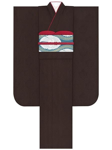 正絹振袖レンタルセット 祝い菊(ボルドー)/帯 矢羽根(赤)