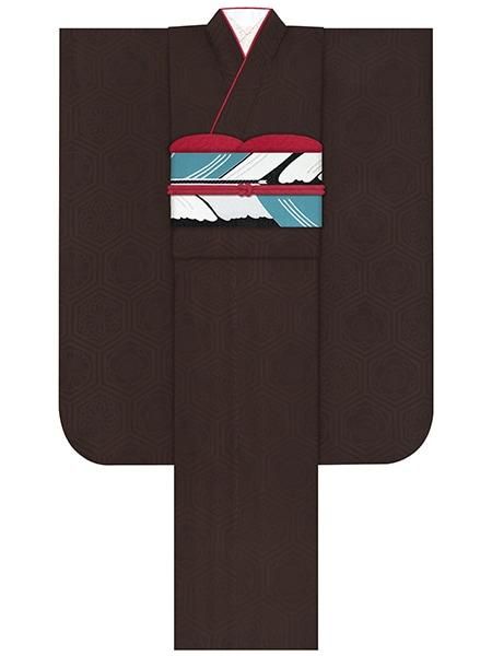 振袖レンタルセット 華亀甲(紺)/帯 縞(オフ)