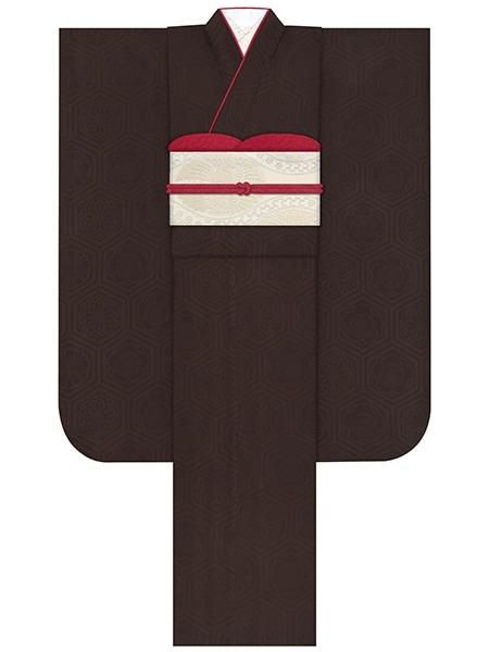 振袖レンタルセット 乙女椿(オフ)/帯 亀甲(黒)