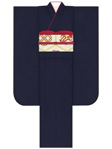 振袖レンタルセット 華亀甲(紺)/帯 亀甲(オフ)