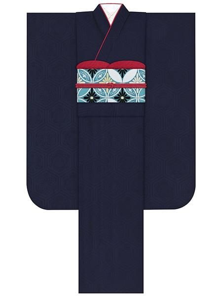 振袖レンタルセット ピーコック(黒)/帯 亀甲(黒)