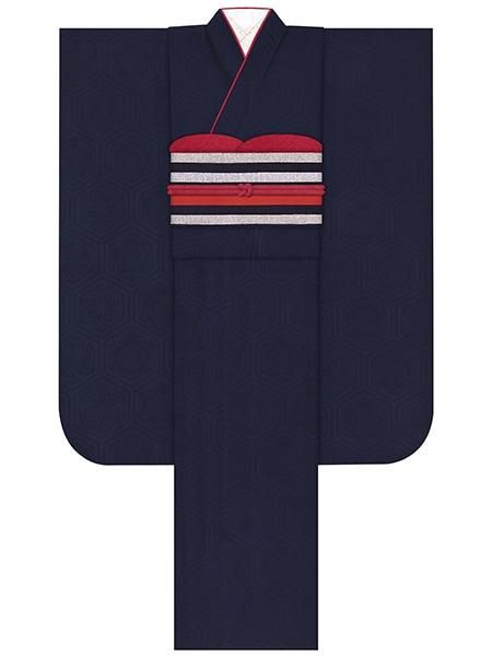 振袖レンタルセット 華亀甲(紺)/帯 縞(オフ)
