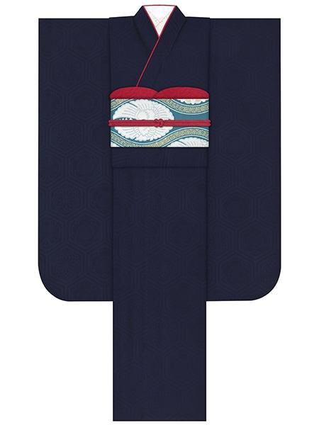 振袖レンタルセット 華亀甲(紺)/帯 おしどり(ターコイズ)