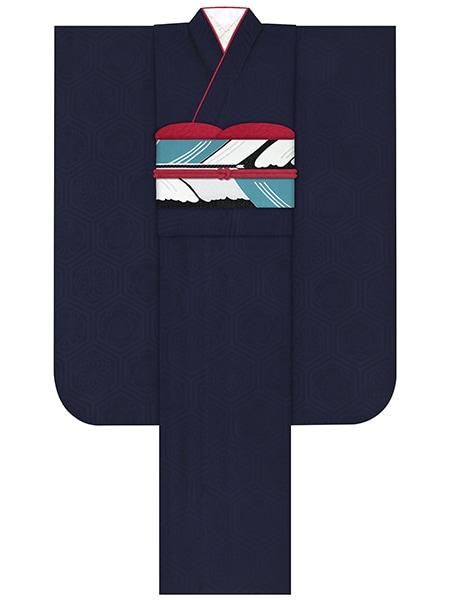 振袖レンタルセット ピーコック(黒)/帯 矢羽根(ターコイズ)