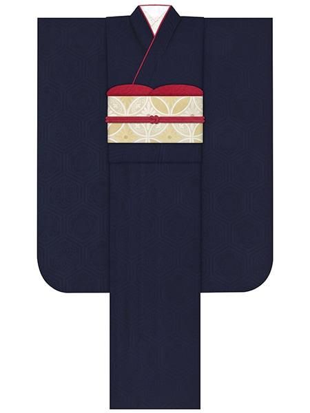振袖レンタルセット つばき家紋(カラシ)/帯 花菱亀甲(黒)