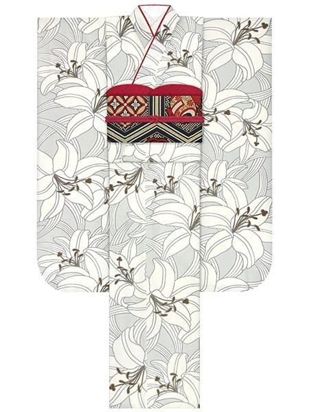 振袖レンタルセット 光琳梅(黒)/帯 おしどり(白銀)